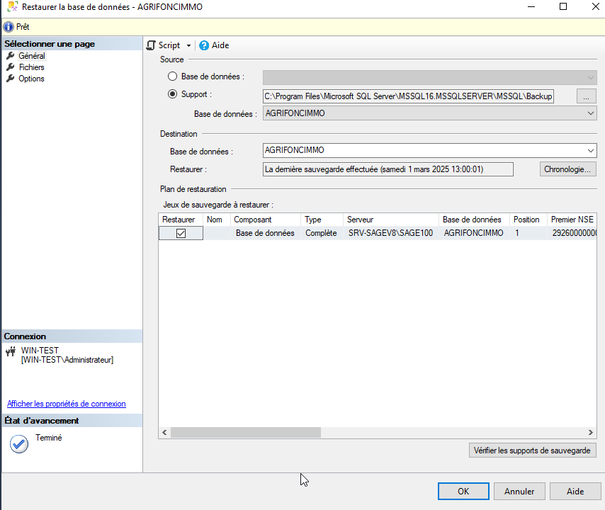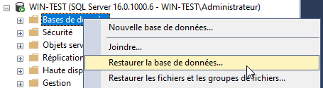- Ensuite "Restaurer la base de données...."