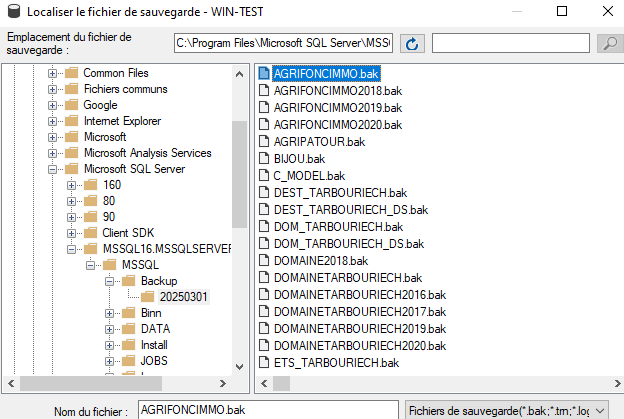 Renseigner le chemin contenant nos fichiers .bak de base de données à restaurer