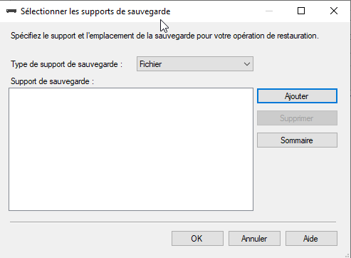 Dans la sélection du support de sauvegarde, on prend "Fichier" et on clique sur "Ajouter"